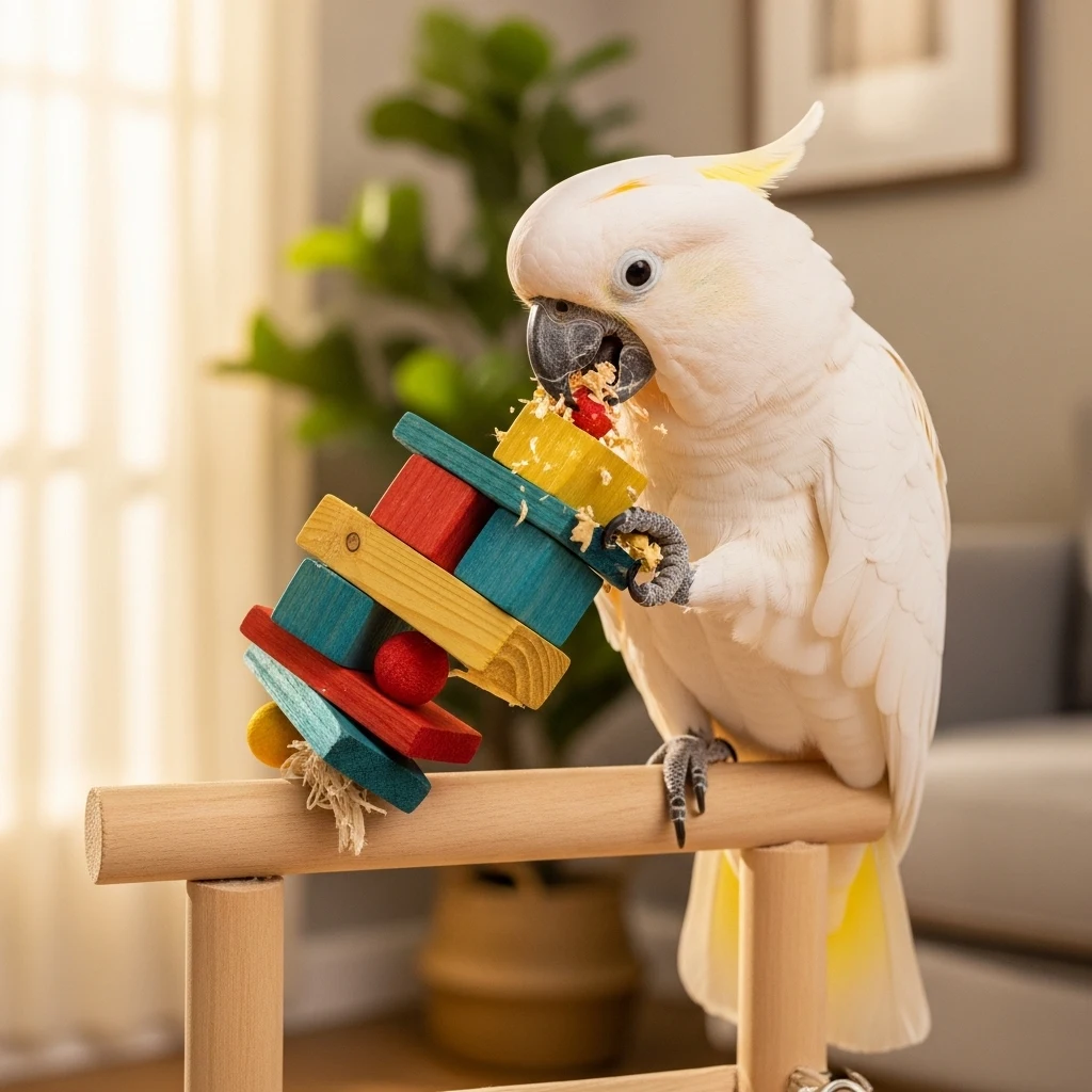 Choosing the right chew toys for your cockatoo boosts their well-being and keeps them engaged. Wooden blocks and foraging toys each offer unique benefits. These options cater to your bird’s natural behaviors.
